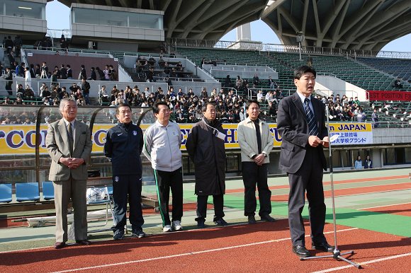 正是這點的不同,導致駒澤大學隊在上半場第35分鐘和第40分鐘,連續兩次利用罰角球的機會頭球破門得分,使得比分變為了3:1。中場休息時,金志揚總教練告誡隊員:由于大部分隊員習慣了國內比賽的較慢節奏,面對這種異常的快節奏和頭球助跑搶點的打法可能心理上準備不足,所以感到極不適應,下半場的比賽一要心理上穩住陣腳,二要進攻中積極拼搶,三要防守時注意站位,總之,我們是報著學習的態度而來,勝敗乃兵家常事,但即使輸球也不能輸人,大家要盡自己最大的努力和絕不服輸的精神繼續與對方戰斗。
