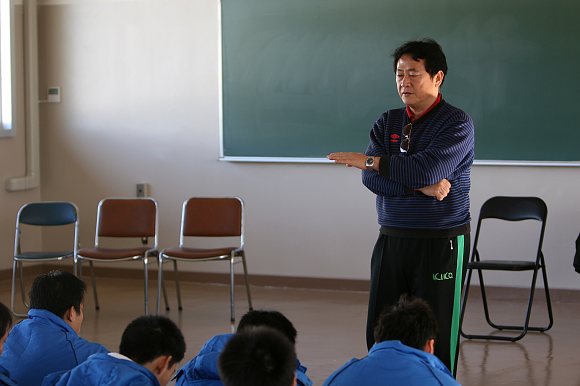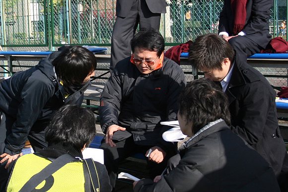 在爭奪第三名的比賽開始之前,我校足球隊總教練金志揚教授總結了上一場比賽的得失,并就本場比賽的對手韓國漢陽大學足球隊的特點進行了認真的分析,金志揚教授主張球隊要想取得更好的成績,想在明年的國內甲級比賽中站穩腳跟,必須進行創新與改革。韓國漢陽大學也好,朝鮮大學也好,其打法與特點都與日本駒澤大學相似,這次比賽大家要有充分的心理準備,要以快治快,以拼治拼,看看自己的比賽節奏和拼搶技術能否與對方看齊,并爭取抓住場上的每一次機會,力爭先發制人,盡量讓對方不適應我們調整后的新節奏,當然這種嘗試打法需要大家統一思想,在場上盡自己最大的努力去跑去拼去搶,不能有絲毫的猶豫,無論最后結果如何,只要大家盡力了,這樣我們就不僅能從對手身上學到足球發展新的理念,而且可以把它與自己的技戰術結合起來。
