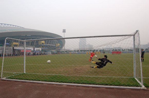 讓我們再回顧一下激動人心的沖甲之戰的點球決戰過程吧。首先是天津火車頭隊罰點,由于壓力過大,這位對方的場上核心隊員竟然第一個罰球就將球罰飛了~~~