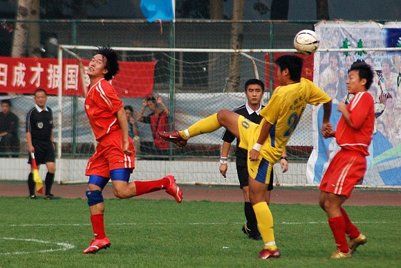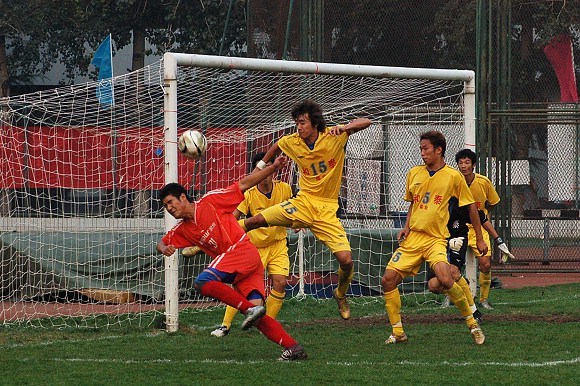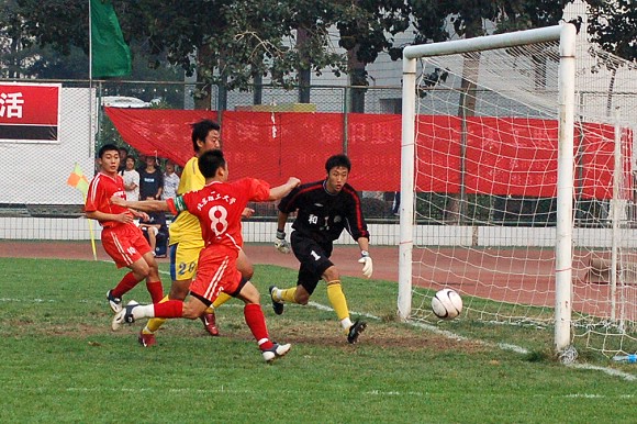 天津火車頭隊的隊員身高優勢化解了北京理工大學足球隊的一次次反攻。