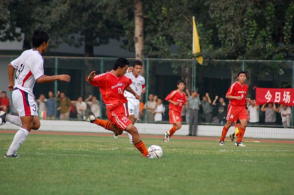 8月26日下午4點(diǎn),我校足球隊(duì)迎來(lái)了2006全國(guó)足球乙級(jí)聯(lián)賽下半程的第二場(chǎng)比賽,在主場(chǎng)迎戰(zhàn)目前排名北方賽區(qū)第四的哈藥毅騰隊(duì),最終對(duì)手在裁判的“關(guān)照”下與我方以0:0戰(zhàn)平,雙方各取1分。在今年上半程的首場(chǎng)比賽中,我校足球隊(duì)在哈爾濱客場(chǎng)曾以2:0戰(zhàn)勝對(duì)手(點(diǎn)擊進(jìn)入相關(guān)鏈接),而對(duì)手踢法粗野,觀眾缺乏文明觀賽現(xiàn)象(點(diǎn)擊進(jìn)入相關(guān)鏈接)也曾引起媒體界的軒然大波。此場(chǎng)比賽之前,哈藥毅滕隊(duì)以5勝3平2負(fù)共積18分的成績(jī)名列北方賽區(qū)第四位,而我校足球隊(duì)在少賽一輪的情況下,以6勝2平1負(fù)積20分的成績(jī)名列北方賽區(qū)榜首,因此,賽前金志揚(yáng)總教練要求隊(duì)員對(duì)此場(chǎng)比賽志在必得。