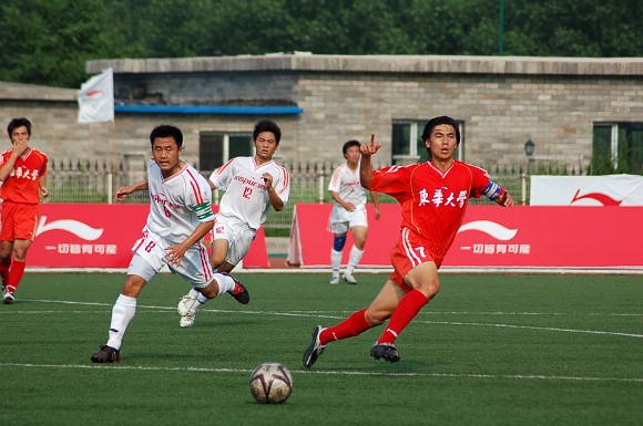 7月7日下午,我校足球隊在沈陽理工大學足球場迎來了李寧杯第六屆中國大學生足球聯賽的半決賽,對手為東華大學足球隊。東華大學隊可謂是我校的老對手,在2004年全國大運會的足球決賽中與我校足球隊戰成平局,最后靠點球大戰獲得冠軍,我校足球隊屈居第二(點擊進入相關報道)。在2005年飛利浦第五屆中國大學生足球聯賽的半決賽中,由于我校足球隊處于新老交替時期,再次以0:2告負東華大學隊(點擊進入相關報道),在三、四名決賽中又負于同濟大學隊從而名列第四(點擊進入相關報道),而東華大學隊則在決賽中戰勝中國人民大學隊獲得冠軍。