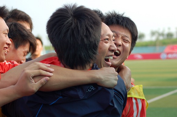 隨著終場哨音的響起,本場比賽梅開二度的17號隊員張樹也激動萬分。