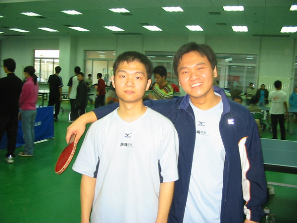 印度尼西亞留學生許天才(右)獲得男子單打第四名,并和韓國留學生組成的男雙獲得了第四名的好成績。