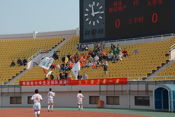 第二輪中甲比賽是青島海利豐第一場主場比賽,俱樂部采取贈票的形式,現場約有1萬多名球迷達到現場,為兩隊加油助威。北京理工大學與青島理工大學的部分師生和愛國者員工、合作伙伴組成的一個特別的助威方隊,為客隊加油。雖然他們人數不多,但吶喊聲不亞于近萬名主場球迷。