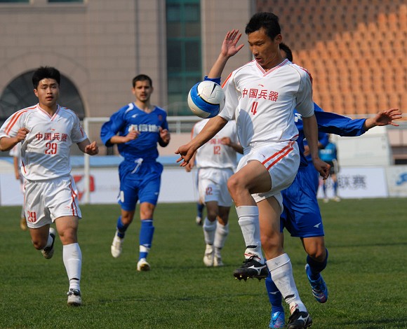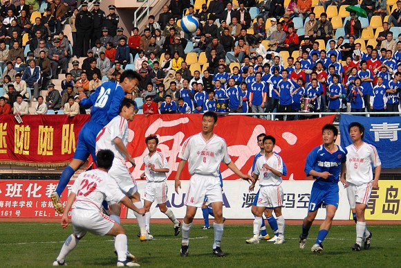 比賽前20分鐘,在球迷的吶喊助威聲中,愛國者大學生隊與完全高于自己實力的青島海利豐一直保持均勢,雙方互有攻守。第20分鐘,青島海利豐改變戰術,提前換人,試圖改變局勢,讓青島海利豐的進攻稍有起色。
