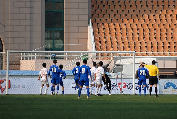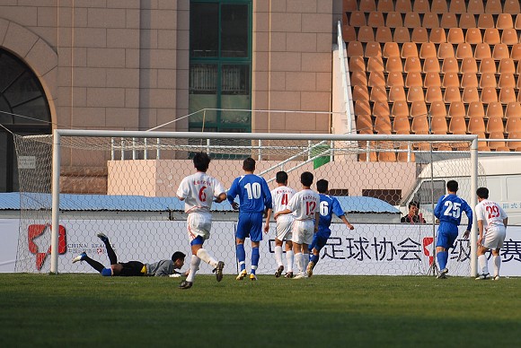 第64分鐘,青島隊獲得一個位置絕佳的任意球機會,青島隊丁偉主罰,球繞過人墻進入球門,青島隊2比0再下一城。