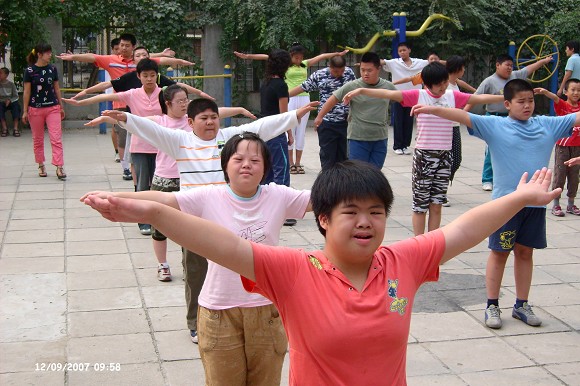 這所學校目前有學生60余人,其中5人為外地學生,老師共有20余人,在校的學生都是智力上有缺陷的殘疾兒童。