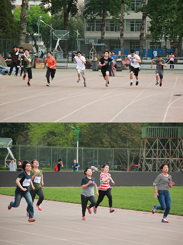 本次運動會包含了田賽、競賽和趣味比賽,既保證了競技性,又體現了娛樂性。運動員秉承著“友誼第一,比賽第二”的原則,在比賽中為了心中的目標揮灑汗水,釋放熱情。在觀眾此起彼伏的加油助威聲中,運動員們一個個如矯兔般飛離起點,像利箭般沖向終點。令人感動的是,比賽中一位同學因為體力不支突然摔倒,但他憑著頑強的意念重新站了起來,并堅持完成比賽。他所展現的不屈不撓,頑強拚搏的體育精神,博得了現場觀眾的掌聲。田賽的比拼也同樣十分精彩。運動員個個摩拳擦掌,毫不示弱。高度和遠度仿佛是他們追逐夢想的尺度,面對目標跨出堅定的步伐,跳了一次又一次,即使失敗也不放棄;重重的鉛球在他們手中仿佛變成了一個個充滿希望的許愿球,自己的夢想也隨著鉛球的“飛翔”定格在出手的一剎那。
