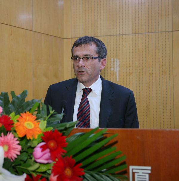 德國康斯坦斯應用科學大學Josef Wieland教授致辭。他說:戴姆勒公司選派員工參加EMBA項目的學習,是最明智的一項人力資源投資,它將給戴姆勒企業(yè)的可持續(xù)性發(fā)展提供潛在的智力支持。他引用了中國的孔子的話,“吾十有五而志于學,三十而立,四十而不惑,五十而知天命”。 并告誡學員:學習是一項終生的事,要“活到老學到老”!