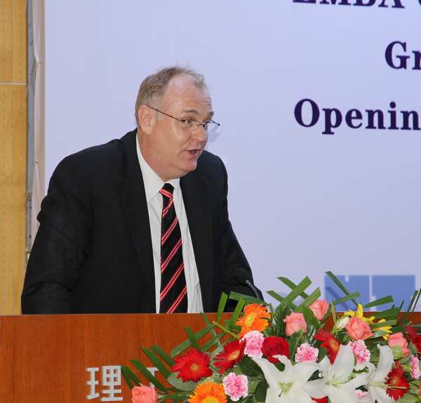 戴姆勒東北亞地區(qū)首席財(cái)務(wù)官Helmut Ruhl先生對(duì)畢業(yè)生表示祝賀。他回顧了該項(xiàng)目的合作歷史。他說:作為跨國企業(yè),戴姆勒公司希望與EMBA項(xiàng)目所有畢業(yè)生一起為促進(jìn)戴姆勒實(shí)現(xiàn)2020年任務(wù)目標(biāo)貢獻(xiàn)力量。