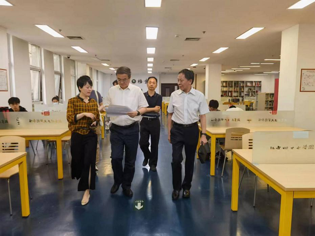 為進(jìn)一步深入學(xué)習(xí)習(xí)近平新時(shí)代中國(guó)特色社會(huì)主義思想,深刻領(lǐng)會(huì)“兩個(gè)結(jié)合”的重要意義及習(xí)近平總書(shū)記在文化傳承發(fā)展座談會(huì)上的重要講話(huà)精神,近日,校黨委書(shū)記張軍圍繞“深入學(xué)習(xí)貫徹習(xí)近平新時(shí)代中國(guó)特色社會(huì)主義思想,以?xún)?yōu)質(zhì)文化加速高質(zhì)量教育供給,培育新時(shí)代接班人”主題,帶隊(duì)在兩校區(qū)圖書(shū)館深入開(kāi)展調(diào)研。黨委常委、副校長(zhǎng)汪本聰,校長(zhǎng)助理?xiàng)顏喺㈤惼G參加調(diào)研。