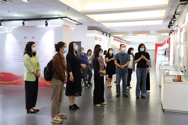 人文學院老師們首先來到圖書館“老科學家學術成長資料采集工程館藏基地”,集體參觀《黨的事業就是我的奮斗方向——科學家入黨故事選粹》展覽,各位老師被老一輩科學家的嚴謹態度、深厚素養和思想魅力所吸引,加深了對愛國、創新、求實、奉獻、協同、育人的科學家精神內涵的理解和認識。