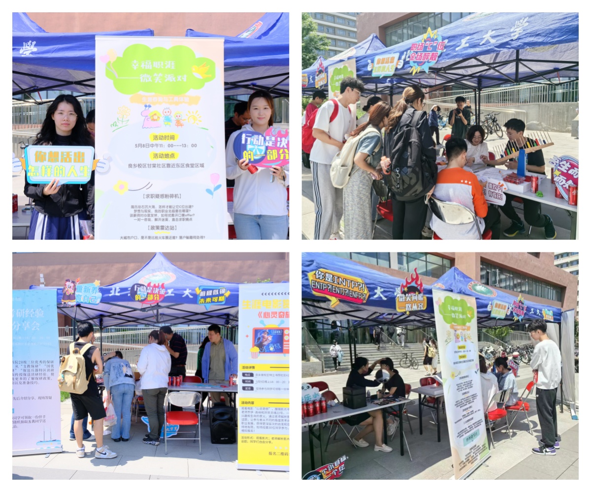 58日至9日,學校成功舉辦“職享微笑·幸福生涯”生涯活動進書院社區(qū)系列活動。北京理工大學學生就業(yè)指導中心聯(lián)合本科書院,分別在甘棠社區(qū)、精工書院社區(qū)、求是書院社區(qū)、北京書院社區(qū)、睿信書院社區(qū)、特立書院社區(qū)開展幸福職涯·微笑派對(現(xiàn)場生涯咨詢與工具體驗)、生涯茶話會、考研經(jīng)驗分享會、生涯知識問答、時間里的咖啡屋·生涯讀書會、生涯電影賞析六場主題生涯活動,累計參與學生500余人。