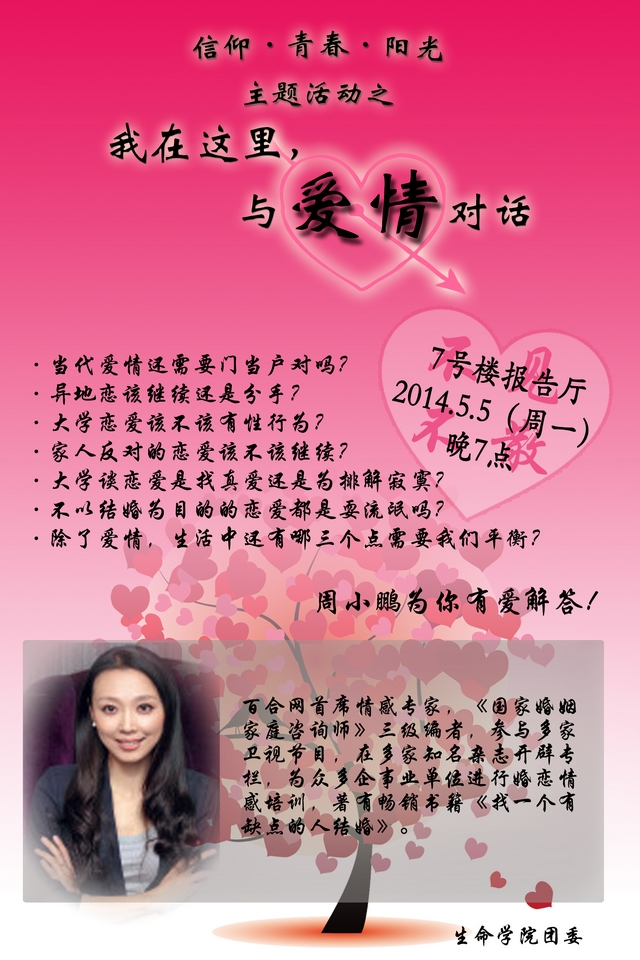 生命學院“信仰·青春·陽光”主題活動之“我在這里,與愛情對話”講座預告