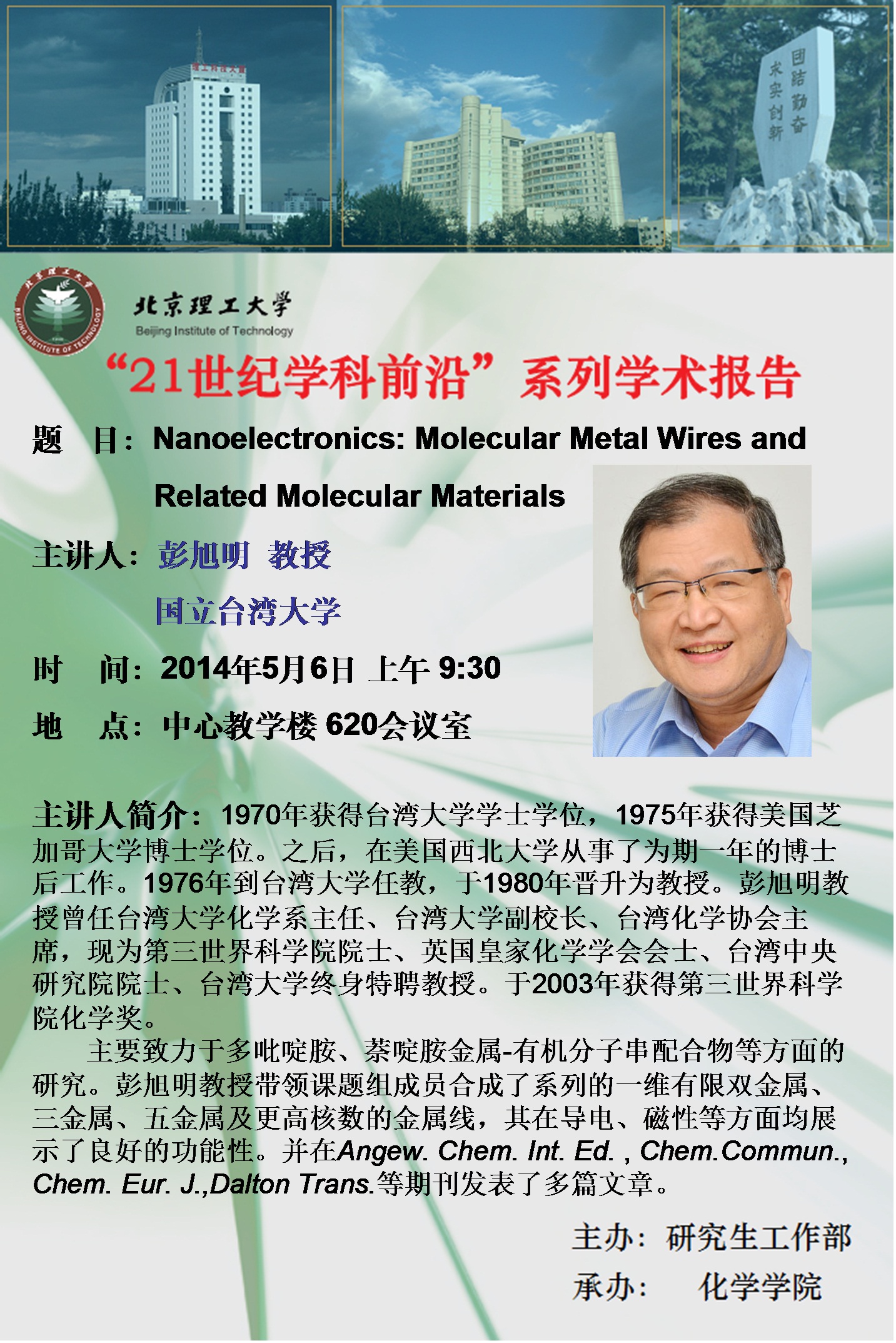 化學學院“21世紀學科前沿”彭旭明院士學術報告預告
