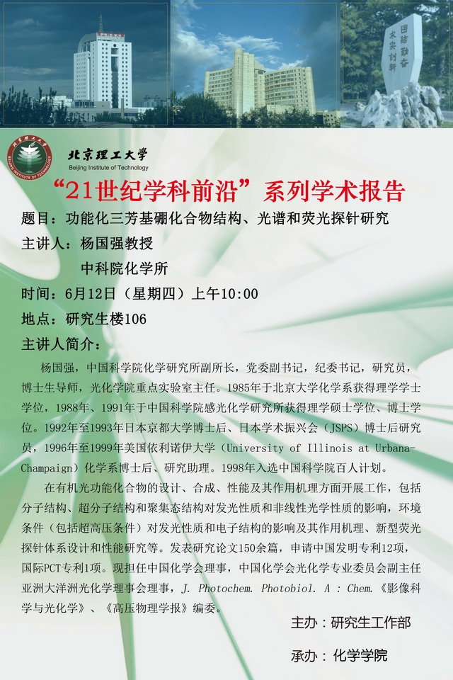 化學(xué)學(xué)院“21世紀(jì)學(xué)科前沿”楊國(guó)強(qiáng)教授學(xué)術(shù)報(bào)告預(yù)告