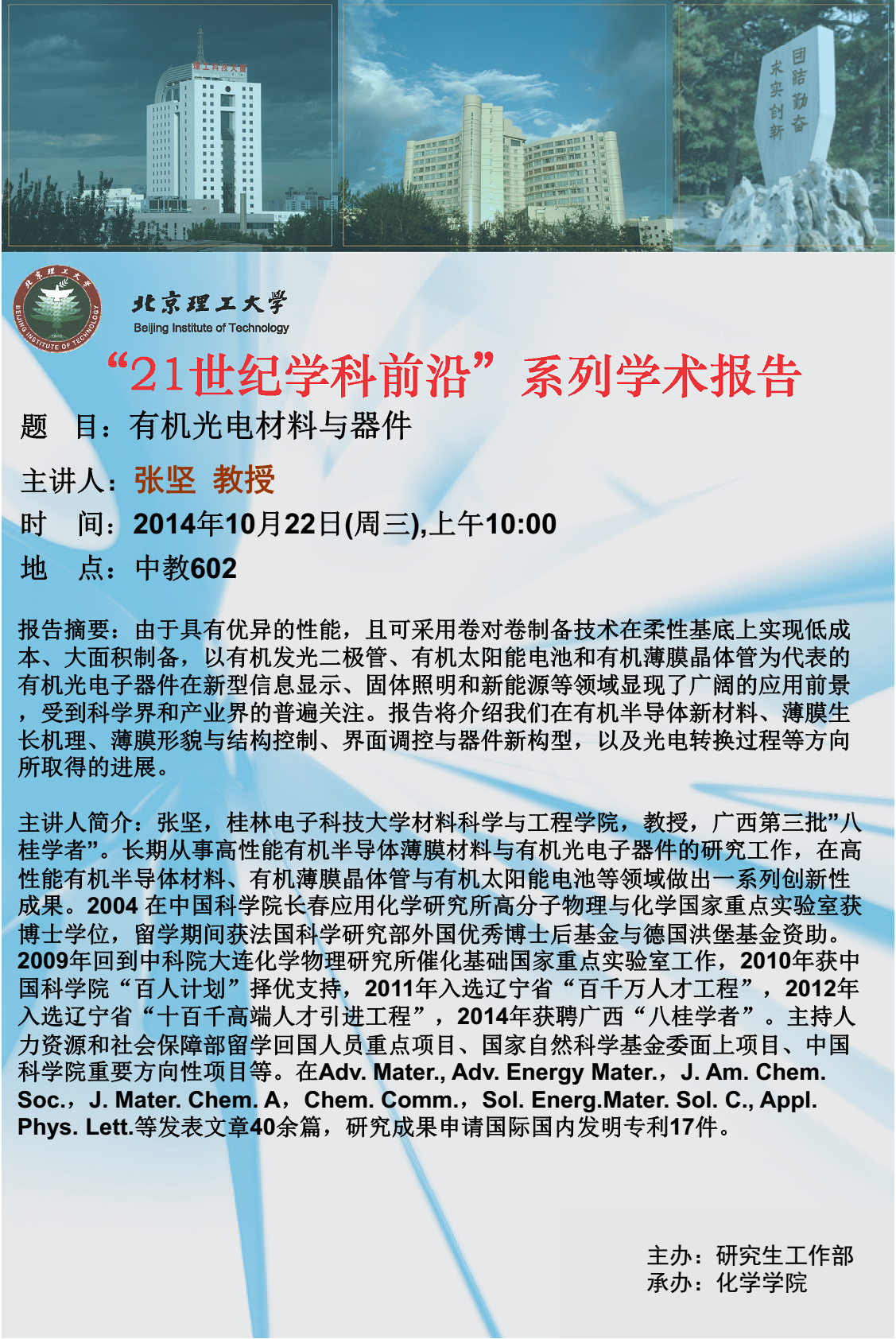 化學(xué)學(xué)院10月22日學(xué)術(shù)報告預(yù)告