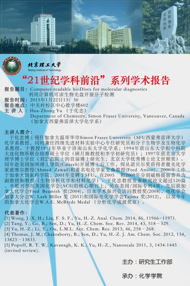 化學學院“21世紀學科前沿”于化忠教授學術報告預告