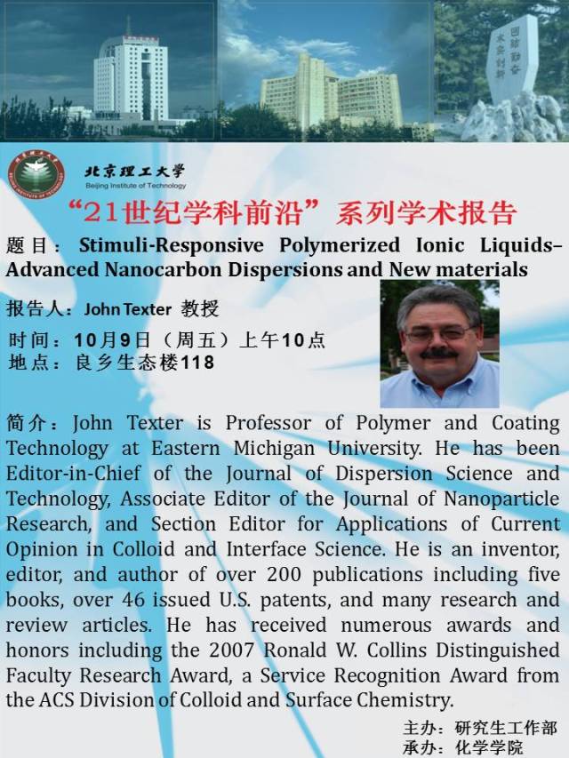 【化學(xué)學(xué)院】“21世紀(jì)學(xué)科前沿”John Texter教授學(xué)術(shù)報(bào)告通知