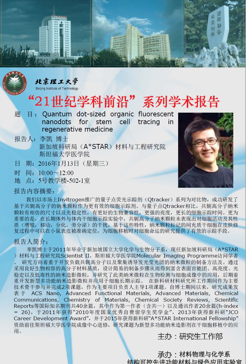 【材料學院】21世紀學科前沿——李凱博士學術報告通知