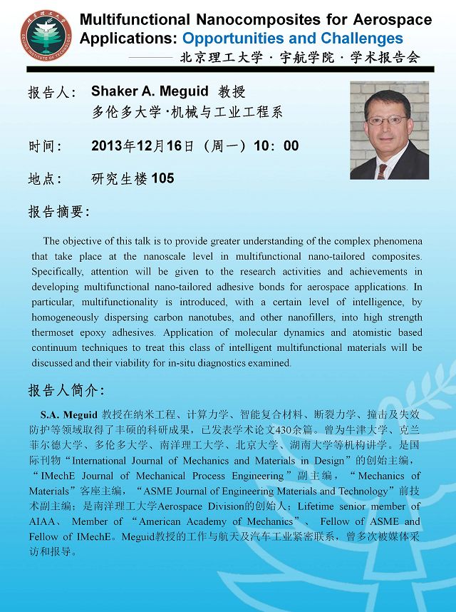 宇航學(xué)院12月16日學(xué)術(shù)報告預(yù)告