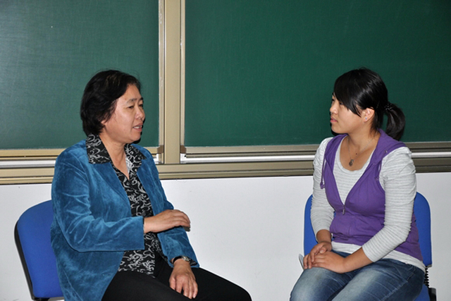 圖3基礎教育學院創新協會的學生采訪前來作專題講座的洪瑾教授