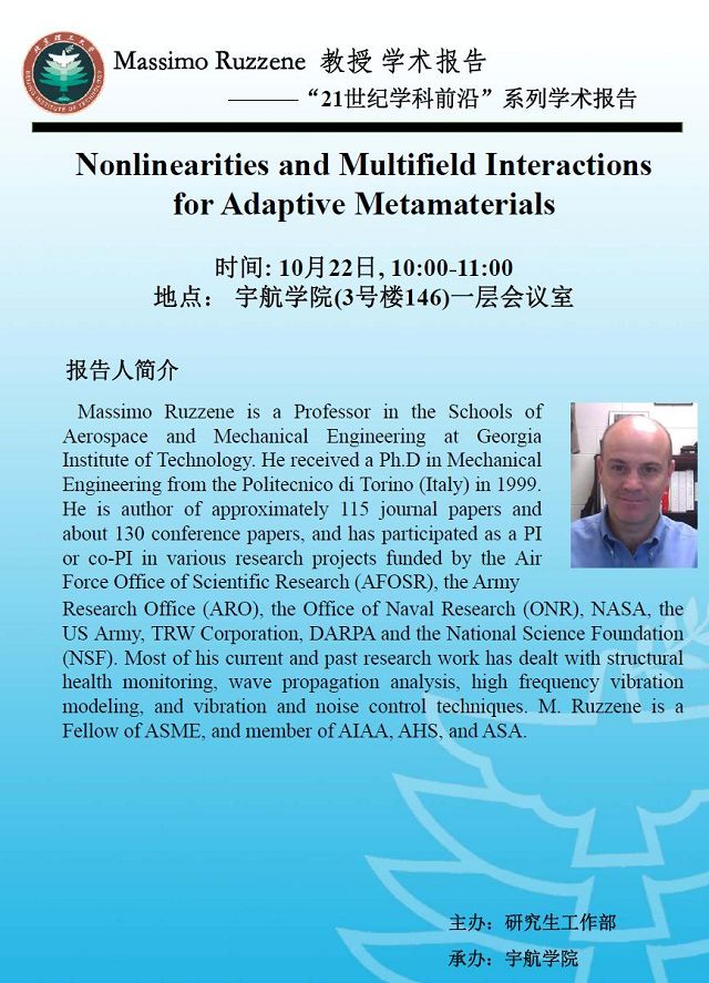 ?>?宇航學(xué)院10月22日學(xué)術(shù)報告預(yù)告