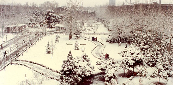 我校中關村校區的中心花園自上世紀五十年代建校初期直至八十年代初,一直由比較零亂的臨時建筑和花房用地組成,直到八十年代中期,為迎接校慶45周年,學校對中心花園進行了較大規模的重新規劃和改造,使其成為了師生員工的一方樂土。