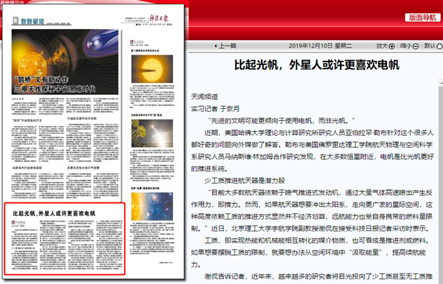 編輯:吳楠 審核:王征 閱讀次數:原文標題:比起光帆,外星人或許更喜歡電帆