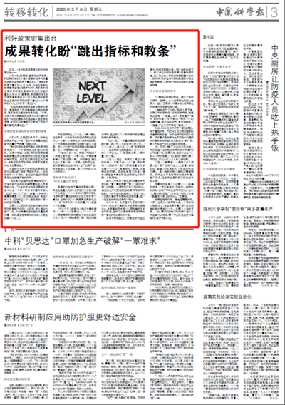 政策的出臺對于高校成果轉化部門來說也是重大利好。北京理工大學技術轉移中心副主任陳柏強告訴《中國科學報》:“《專利若干意見》和《SCI論文評價若干意見》這兩個文件明確提高成果轉化在‘雙一流’和學科評估中的權重,可謂是指揮棒的調整。”