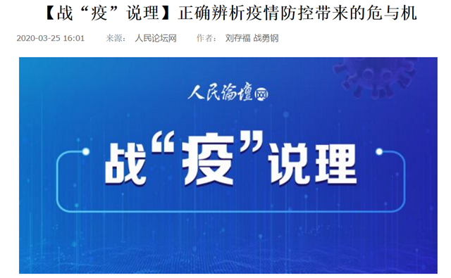 編輯:吳楠 審核:劉曉俏 閱讀次數(shù):原文標(biāo)題:【戰(zhàn)“疫”說理】正確辨析疫情防控帶來的危與機(jī)
