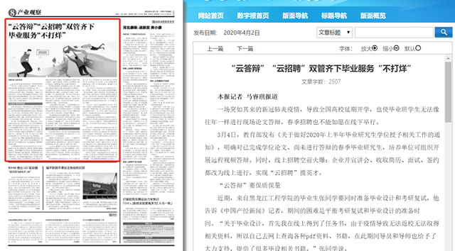 編輯:吳楠 審核:劉曉俏 閱讀次數:原文標題:“云答辯”“云招聘”雙管齊下畢業服務“不打烊”