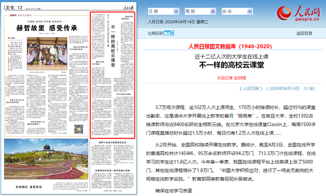 3.7萬場次課程、逾102萬人次上課師生、170萬小時授課時長、超過95%的課堂出勤率,這是清華大學開展線上教學的首月“報告單”。在復旦大學,全校1392名授課教師與近8400名研究生相聚云端。在北京大學在線課堂ClassIn上,每周1500多門課程直播總時長超過1.5萬小時,每日約有1.2萬人次在線上課……
