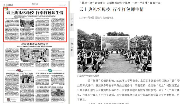 受“新冠”疫情的影響,2020年大學畢業季,北京的多數高校均以線上“云”畢業的方式進行。雖然很多畢業學子身處全國各地,不能返校,但這場“云上”相聚注定會讓畢業典禮成為不可復刻的永恒紀念。北京青年報記者在探訪時發現,除了“云”畢業典禮,今年畢業典禮上的校長講話、畢業季的禮物以及畢業行李的寄送等環節也很特殊,且有意義。