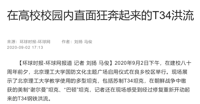 編輯:吳楠 審核:劉曉俏 閱讀次數:原文標題:在高校校園內直面狂奔起來的T34洪流