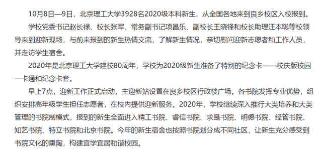 原文標題:北京理工大學喜迎2020級本科新生入校