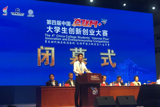 倪俊在第四屆中國“互聯網+”大學生創新創業大賽閉幕式作為學生代表發言