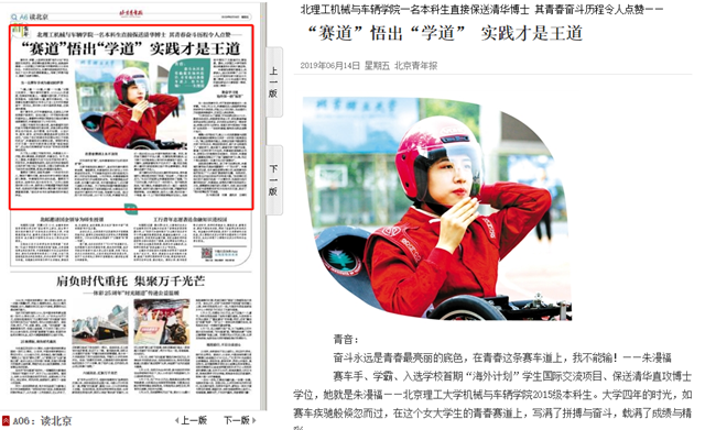 賽車手、學(xué)霸、入選學(xué)校首期“海外計(jì)劃”學(xué)生國(guó)際交流項(xiàng)目、保送清華直攻博士學(xué)位,她就是朱漫福——北京理工大學(xué)機(jī)械與車輛學(xué)院2015級(jí)本科生。大學(xué)四年的時(shí)光,如賽車疾馳般倏忽而過(guò),在這個(gè)女大學(xué)生的青春賽道上,寫滿了拼搏與奮斗,載滿了成績(jī)與精彩。