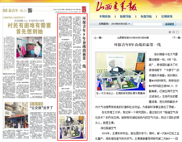 如今,王博團隊研究的MOF材料已被應用于空氣過濾凈化,陸續被制成各種各樣的濾芯,制成不同的工業產品,如空氣凈化器、車載空調等。這兩年,王博團隊一直在和廠商、公司洽談合作,與企業合作開發的 “隧道空氣凈化技術”,將應用于北京市交通系統。
