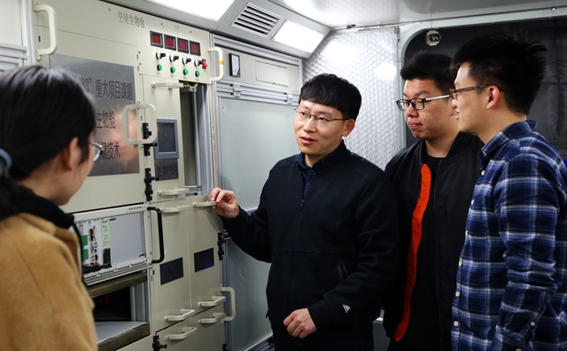 楊春華在空間模擬艙為課題組同學講解生物實驗平臺關鍵技術