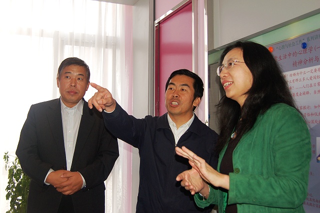 掛牌儀式上,王民忠書記(左)授牌并致詞,他結合當今社會人際交往和生活壓力的現實強調了心理咨詢的意義和重要性,表達了對我校心理素質教育示范基地未來工作的良好祝愿和期望。李校長對我校心理咨詢服務和教育工作給予了高度的關心和支持,肯定了我校心理咨詢理論和實踐的發展,并表達了對學生心理健康工作的關注。