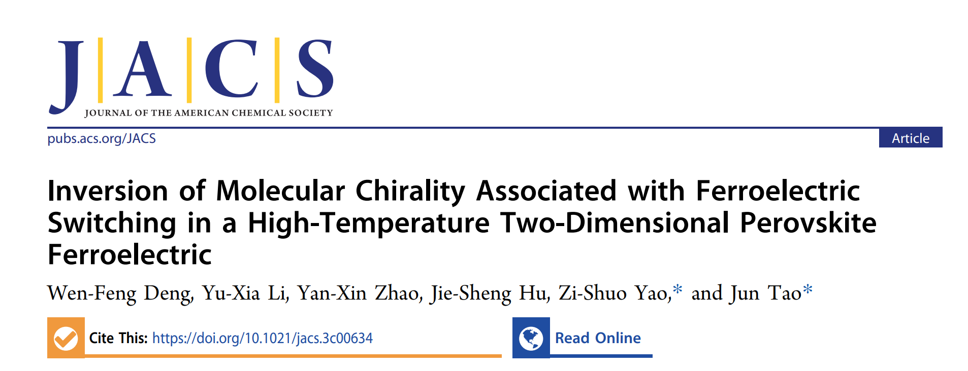 近日,北京理工大學化學與化工學院姚子碩研究員在刺激響應分子基單晶材料研究中取得重要進展。相關工作以“Inversion of Molecular Chirality Associated with Ferroelectric Switching in a High-Temperature Two-Dimensional Perovskite Ferroelectric”為題,發表在國際著名化學期刊《美國化學會志》。北京理工大學為唯一作者單位,化學與化工學院陶軍教授和姚子碩研究員為文章共同通訊作者,文章第一作者為北京理工大學碩士研究生鄧文峰。