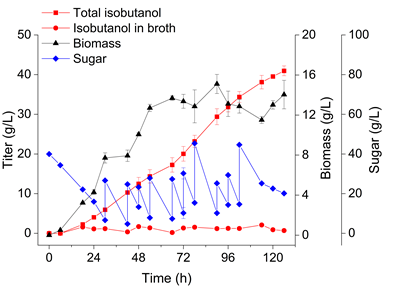 圖4 在3 L發酵罐中以菊粉為底物非滅菌發酵生產異丁醇