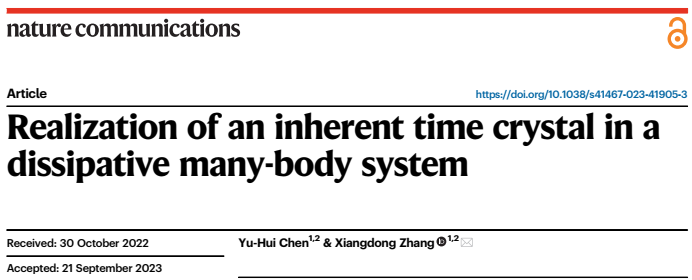 編輯:王莉蓉 審核:陳珂 閱讀次數:日前,北京理工大學物理學院陳宇輝研究員和張向東教授在時間晶體研究上取得重要突破,首次在實驗上實現了固有的時間晶體,相關研究成果在Nature Communications上發表[Nat Commun (2023) 14:6161]。北京理工大學物理學院陳宇輝研究員為該論文的第一作者,北京理工大學物理學院張向東教授為論文的通訊作者。該工作得到了國家自然科學基金,北京理工大學青年教師學術啟動計劃以及北京理工大學青年科技創新計劃的支持。該研究發表后引發廣泛關注,受Nature集團Nature Portfolio Communities的邀請,在“Behind the Paper”欄目撰稿分享研究經歷。