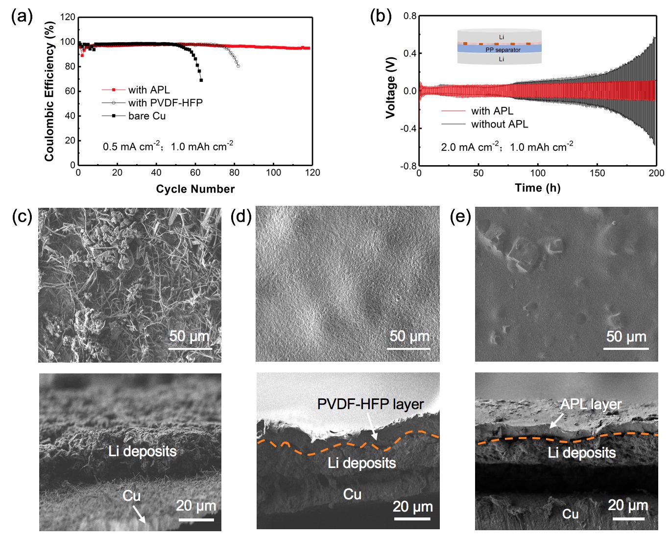 Li-Cu半電池和Li-LFP全電池循環(huán)測(cè)試結(jié)果及相關(guān)鋰沉積形貌差異