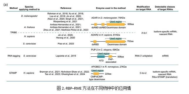本實(shí)驗(yàn)室和其他研究團(tuán)隊(duì)的研究成果顯示,HyperTRIBE具有無(wú)需抗體、背景低、靈敏度高、重復(fù)性好、文庫(kù)制備過程簡(jiǎn)單等優(yōu)勢(shì),為釀酒酵母、哺乳動(dòng)物、果蠅和植物中RBP靶標(biāo)的鑒定提供了可靠的策略(圖2)。未來針對(duì)編輯酶的改造和其他RBP-RME方法的改進(jìn),將進(jìn)一步提高RBP的RNA靶標(biāo)鑒定效率并加深對(duì)生物學(xué)原理和人類健康與疾病的理解。