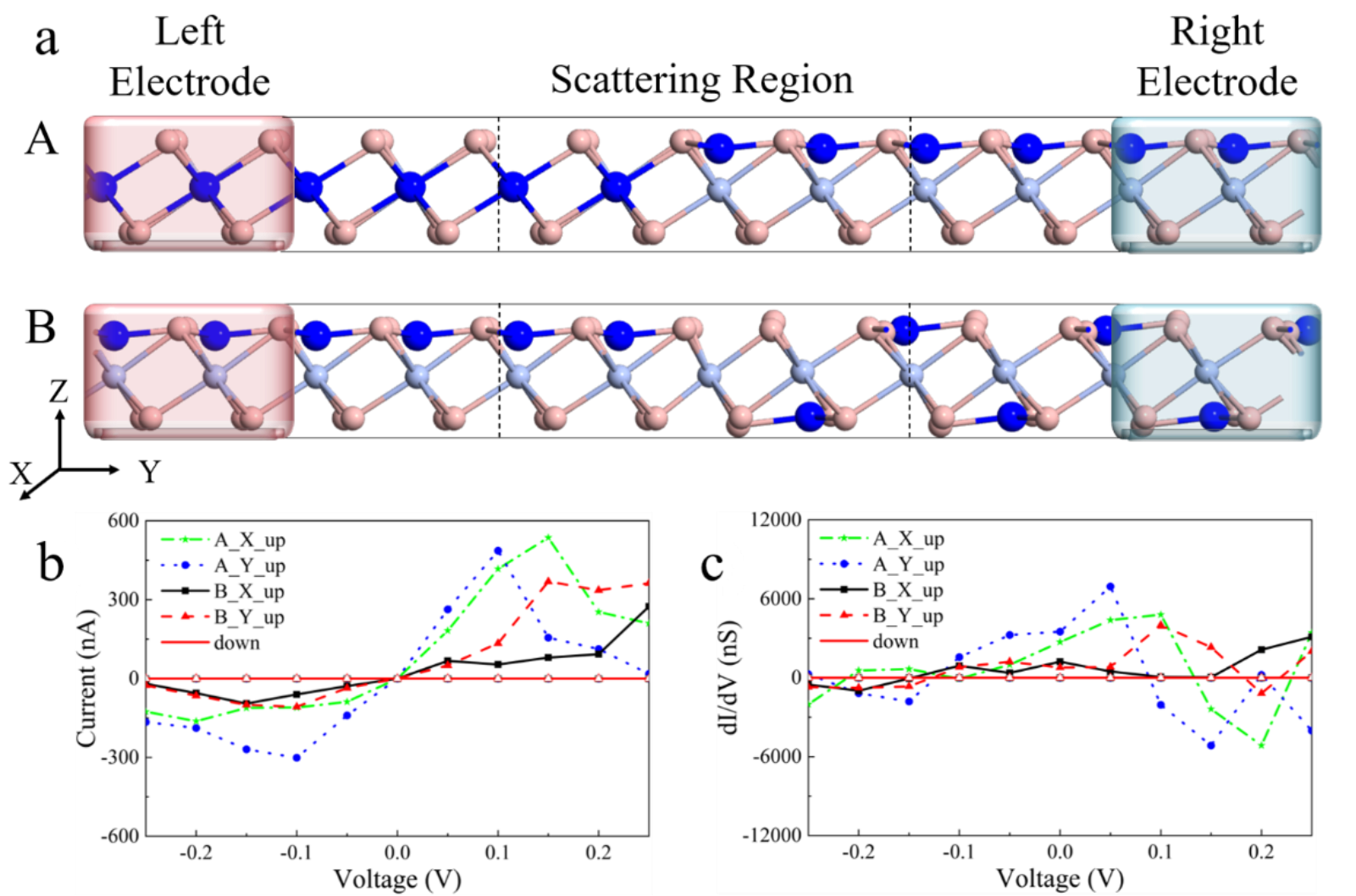 長期以來,人們一直在尋找具有本征多鐵性的二維材料,以實現納米電子器件中磁電耦合的應用。本工作中作者利用過渡金屬原子修飾單層三鹵化鉻實現了單層穩定的Ⅰ型多鐵性,并且其電極化為面外鐵電極化,這有利于外場對其鐵電性的調控。面外鐵電極化表現出較強的原子選擇性,作者發現了84種基于過渡金屬的單層多鐵材料,其中有12種具有面外鐵電或反鐵電極化。通過群論分析揭示了這種現象依賴于p-d耦合和晶體場劈裂。Cu修飾增強了三鹵化物的本征鐵磁性,并且提高了鐵磁轉變溫度。通過計算不同鐵電結構(反鐵電和鐵電)的電極化,作者研究了該系統中的磁電耦合效應。在這些體系中作者獲得了鐵電相和反鐵電相,為磁性材料的外場調控、能量存儲和轉換應用提供了新機遇。此外,作者利用非平衡格林函數方法,計算了雙電極Cu(CrBr3)2器件的輸運性質,結果表明,Cu(CrBr3)2器件具有出色的自旋過濾特性和低偏壓負微分電阻(Negative differential resistance, NDR)效應,具有低功耗的開關響應特性。作者的研究不僅深化了對二維多鐵性材料的認識,預測了多種具有面外鐵電極化的新材料,并揭示了其鐵電性和鐵磁性增強機制,在納米電子和自旋電子器件領域具有廣闊的應用前景。
