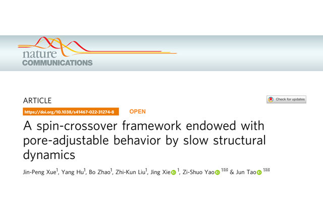 近日,北理工陶軍教授團隊在構筑柔性自旋交叉多孔材料方面取得進展。
