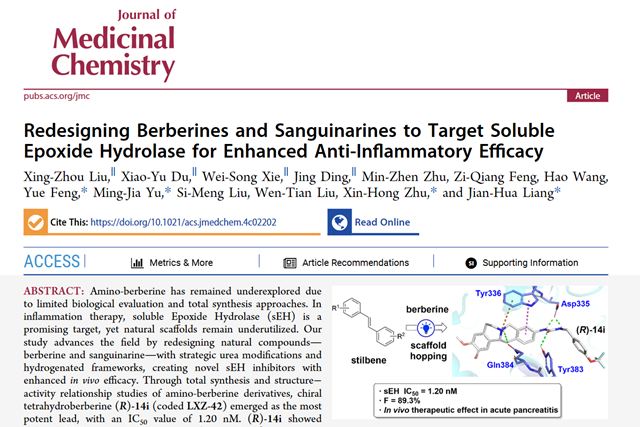 近日,北京理工大學(xué)化學(xué)與化工學(xué)院梁建華教授課題組在靶向sEH的抗炎天然...